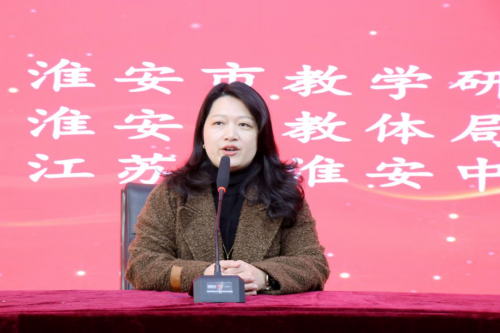 淮安区教研室高中英语教研员何媛媛对本次活动的高效组织与丰富内容予以肯定,并对下一阶段英语教学重点任务作出部署;淮安市教研室高中英语教研员杨建芬在讲话中强调,教师应主动聚焦课堂教学改革,持续更新教育理念,切实提升课堂教学实效,同时鼓励教师积极探索多元化教学方法,通过创设真实情境、加强互动探究,真正激发学生的内在学习动力,培养其核心素养与综合能力。