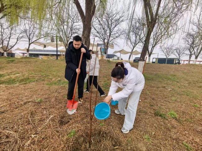 活动现场,青年员工们热情高涨、分工协作,挥锹挖坑、扶苗培土、提水浇灌,每个环节都一丝不苟。为确保新栽树苗能在河堤上稳稳扎根,大家还细心进行加固处理,并主动清理沿岸的杂草与垃圾。通过亲手栽下一棵棵树苗,大家不仅在劳动中体会到生态建设的艰辛,也进一步强化了守护绿水青山的责任感。